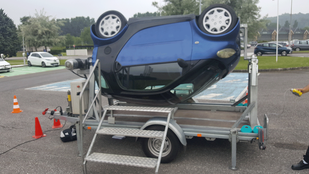 Pour approfondir l’expérience, il est possible d’ajouter une caméra à l’intérieur du véhicule afin d’analyser les réactions du corps lors du tonneau.